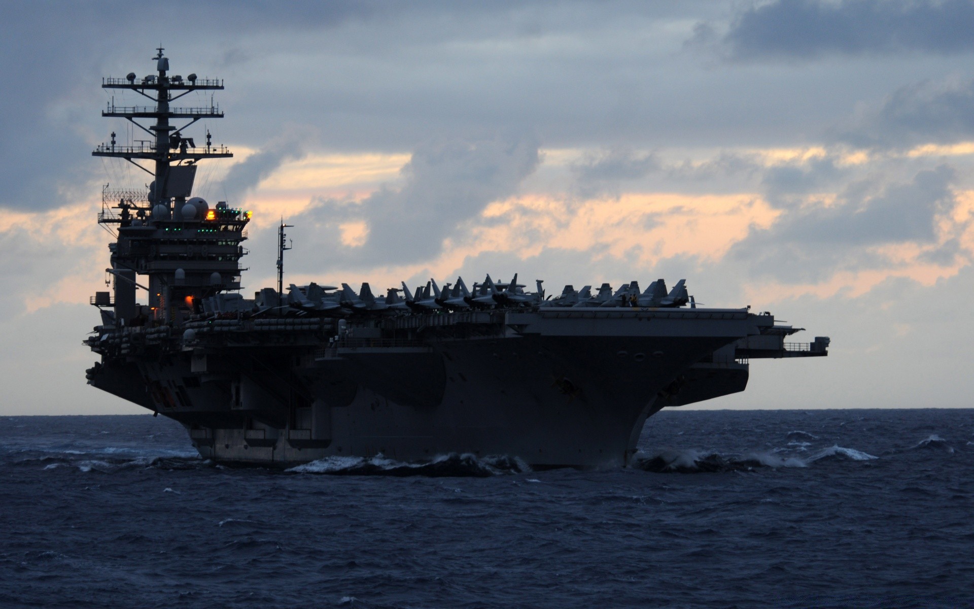 Paisaje de montaña con un castillo y árboles con nubes rojas en el cielo