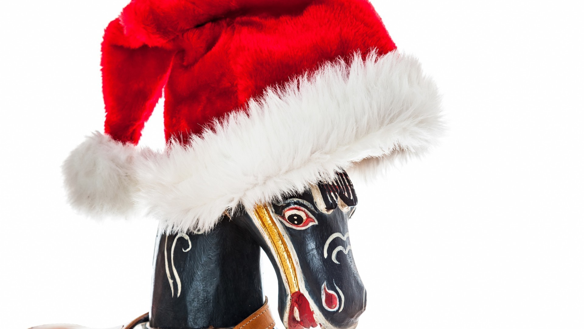 Escultura de la cabeza de un caballo en el estilo persa antiguo en el fondo del cielo al atardecer