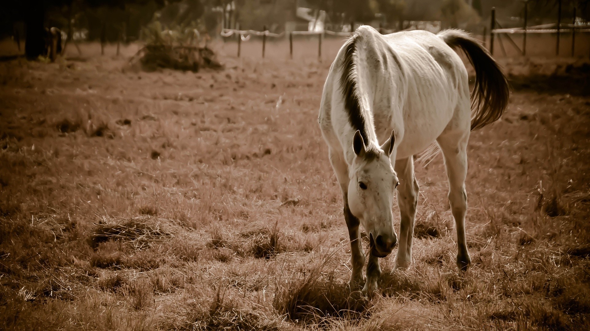 El caballo se puso de pie en el campo