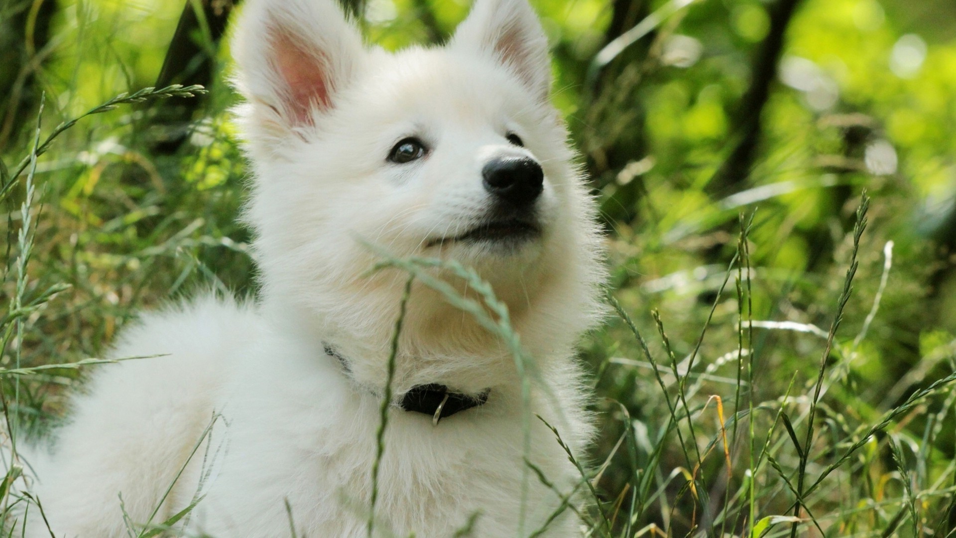 Lindo cachorro blanco en la hierba