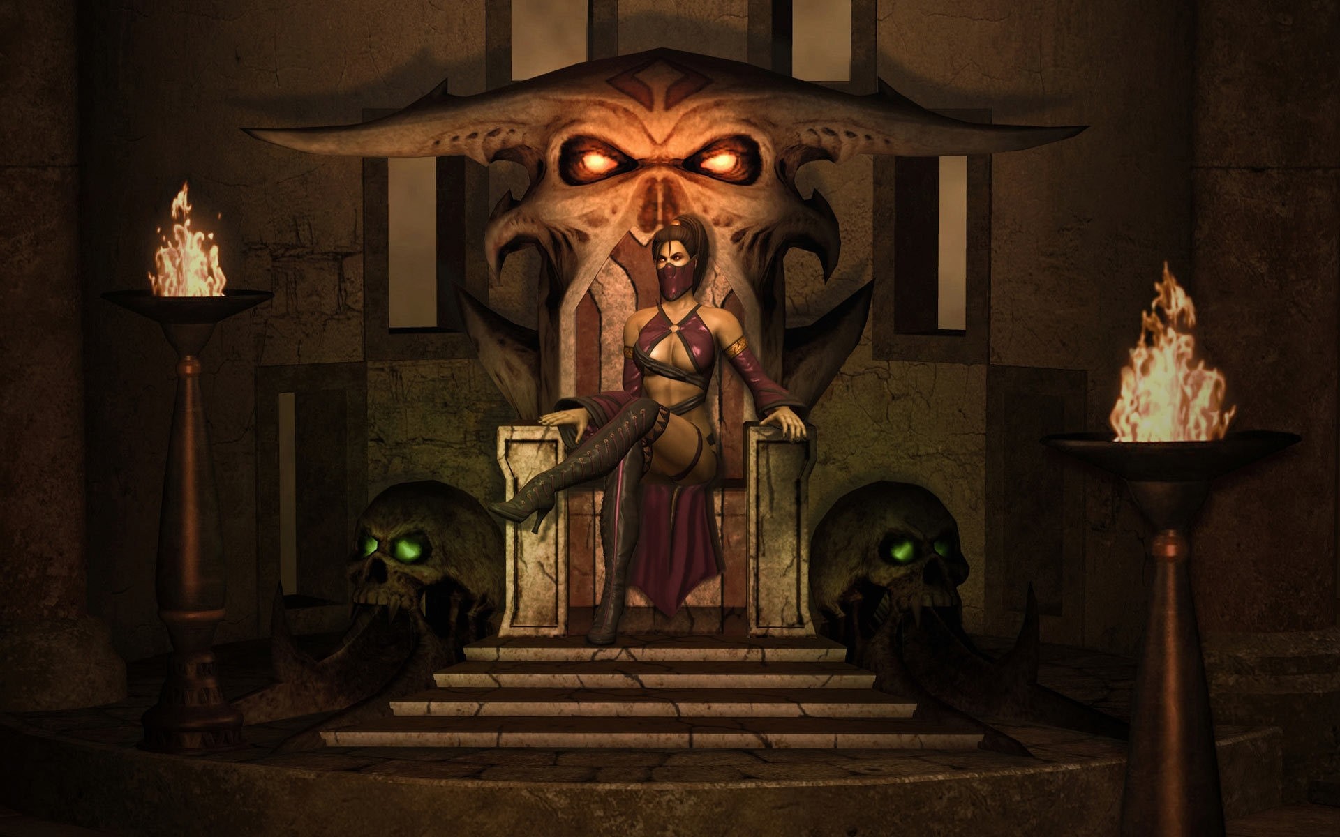 Mujer diabólica en el trono entre las luces