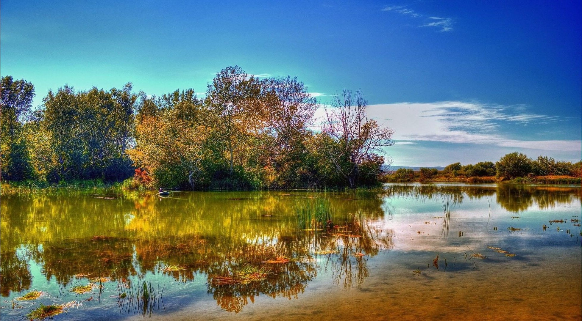 Árboles que se reflejan en la superficie del río