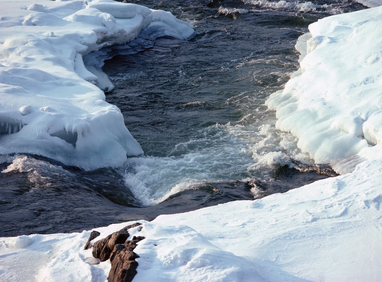 El arroyo atravesó el camino a través del hielo