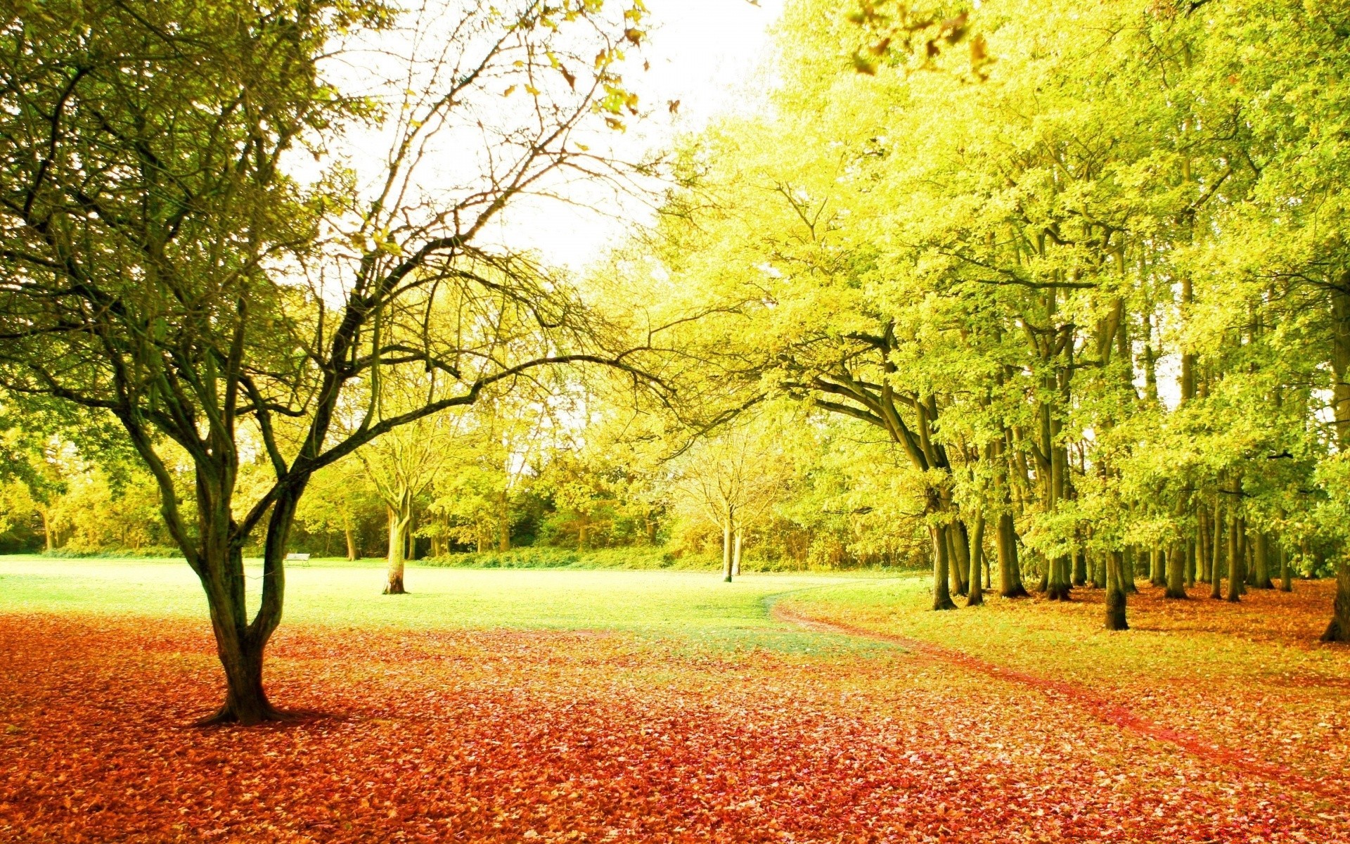 Camino entre los árboles caídos de otoño
