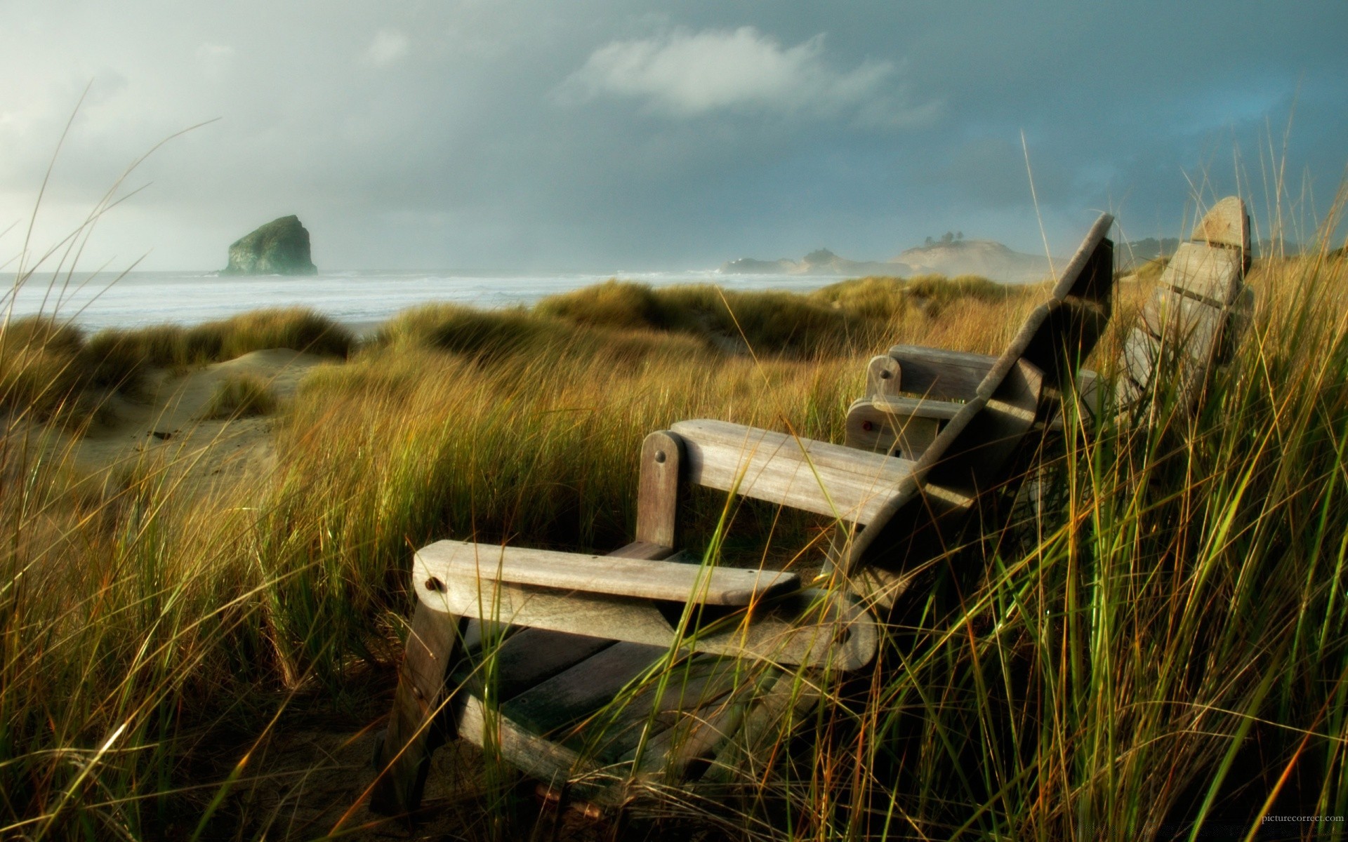 Playa abandonada. En un campo cerca del océano
