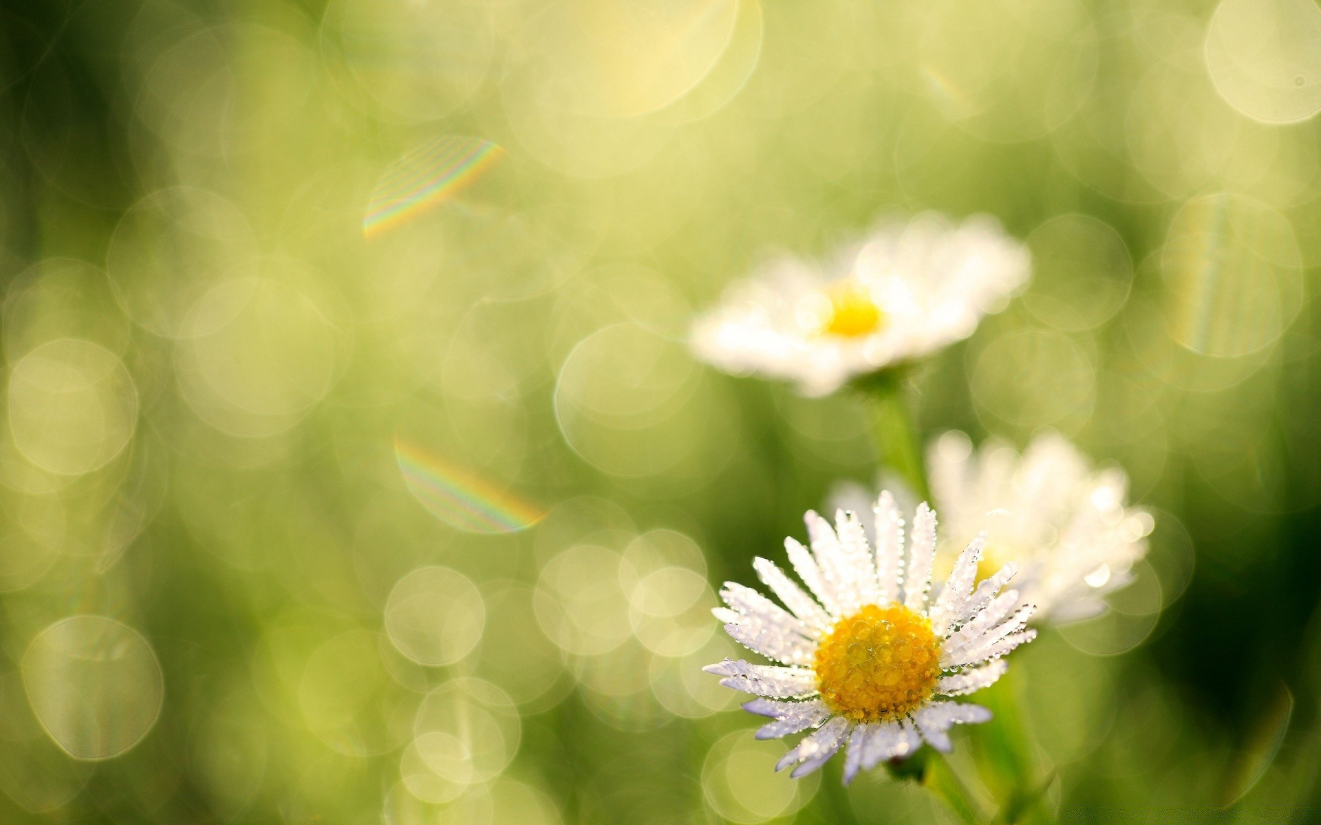 Hierba verde y pequeñas flores amarillas en el campo bajo los rayos del solHierba verde y pequeñas flores amarillas en el campo bajo los rayos del sol