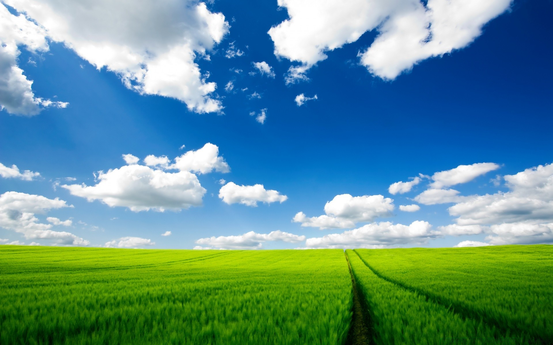 Un campo con hierba verde y un camino que se aleja