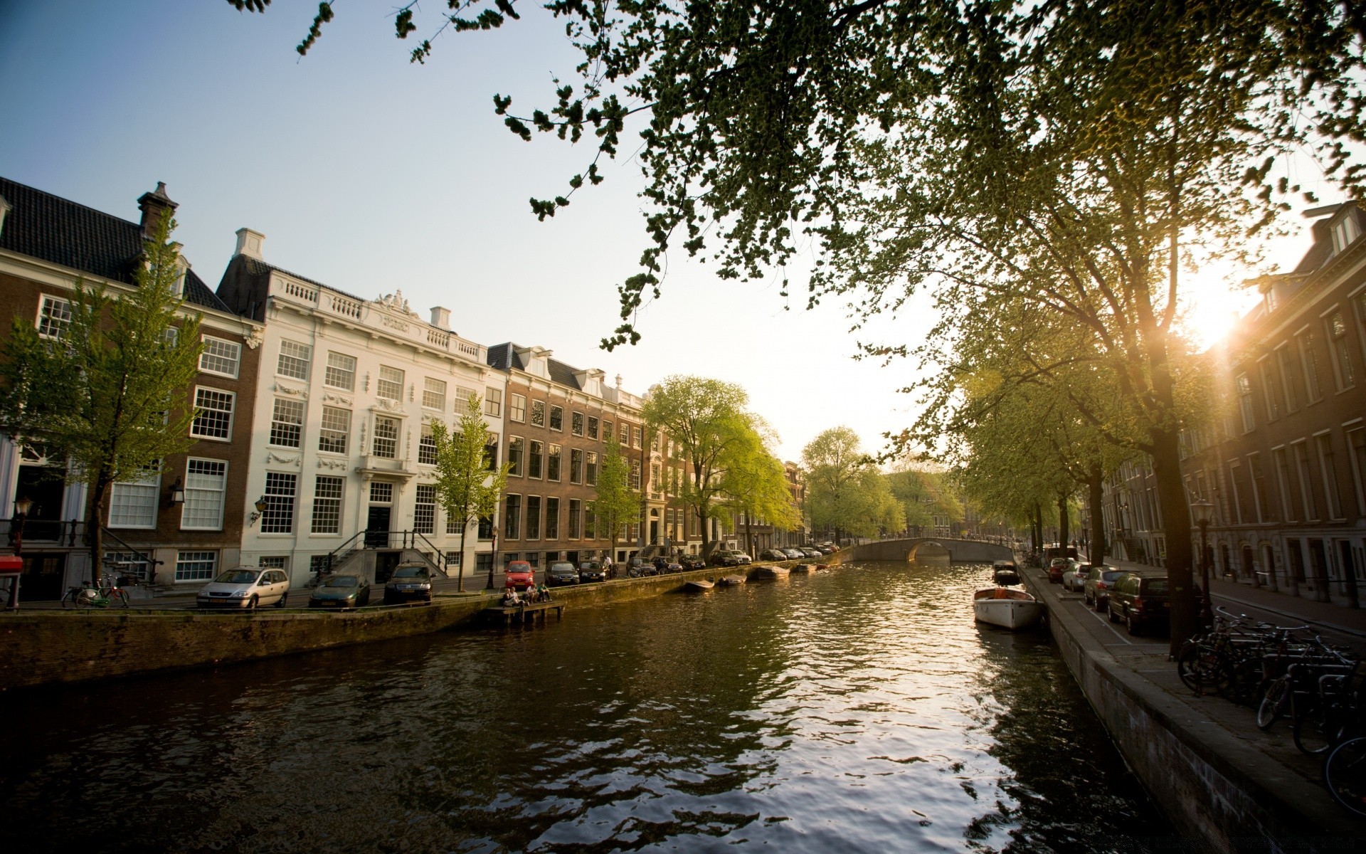 Europa. La construcción urbana se refleja en el cuerpo de agua