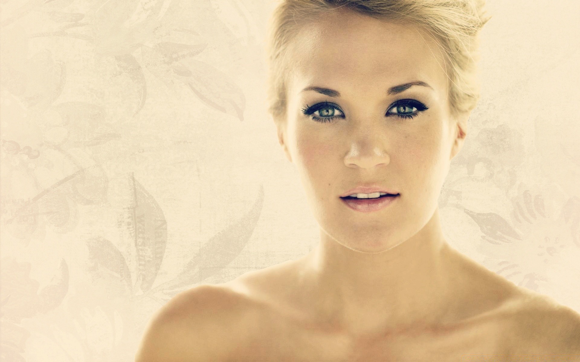Suave rubia en un fondo pastel