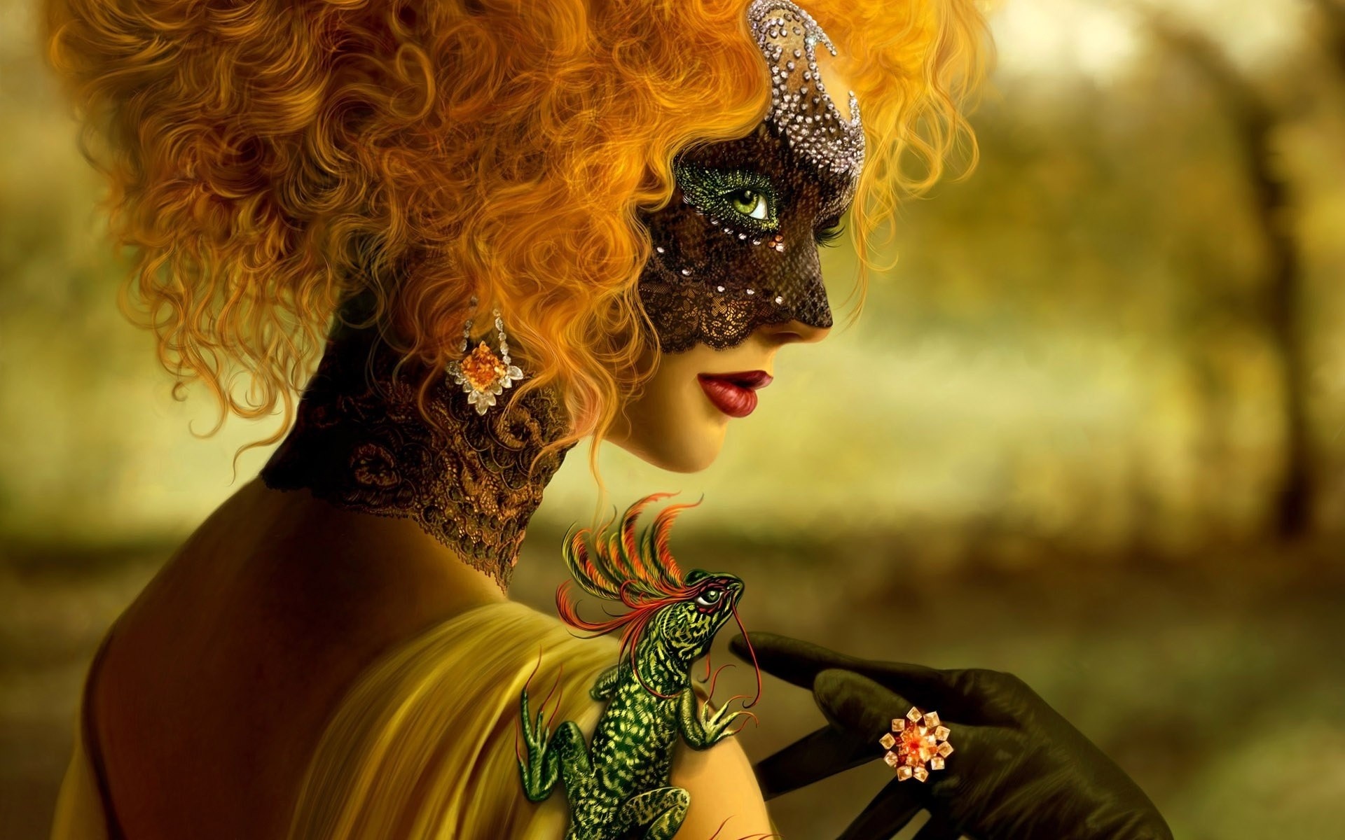 Mujer con el pelo rojo enmascarado