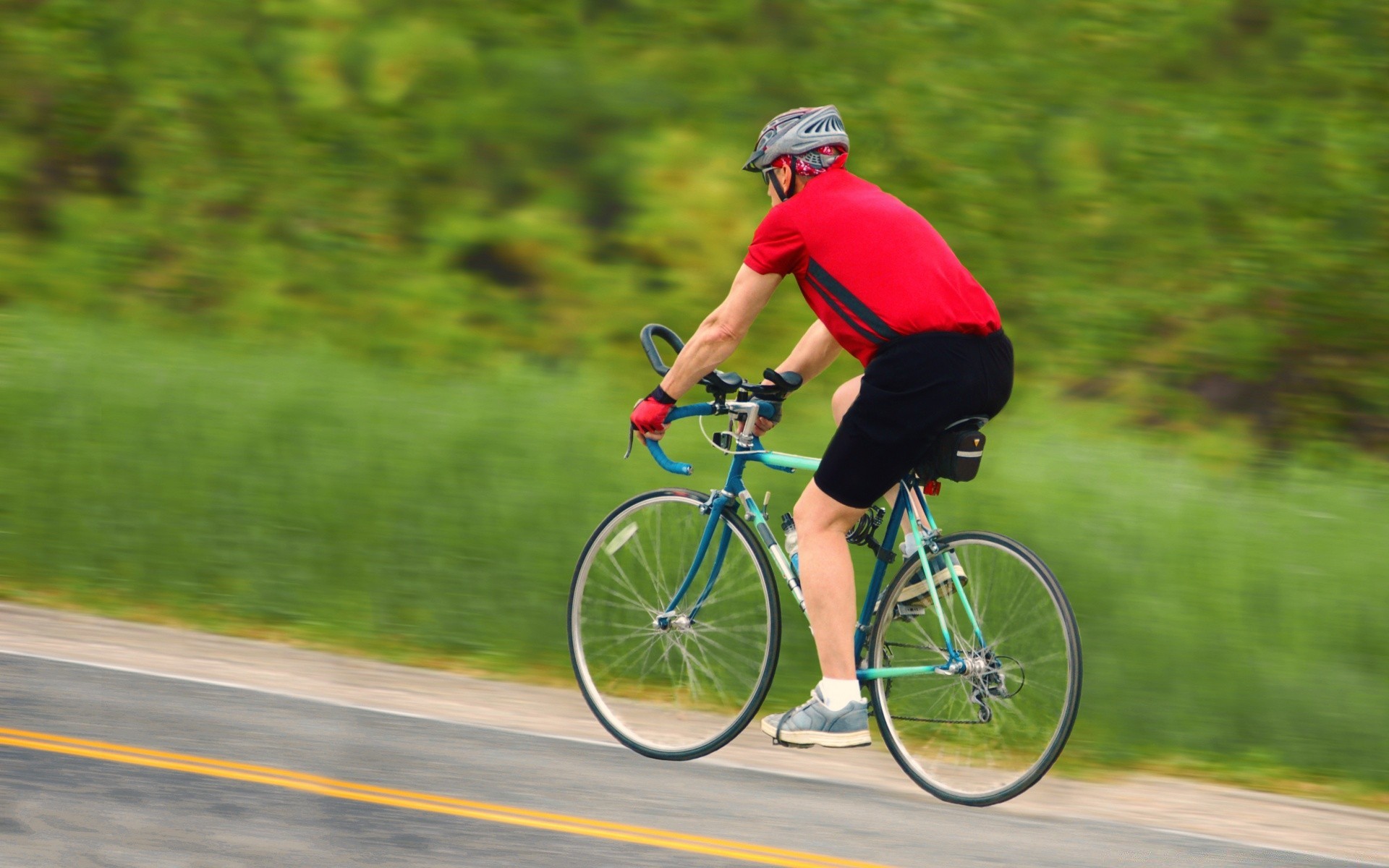 El ciclista viaja rápido por la carretera