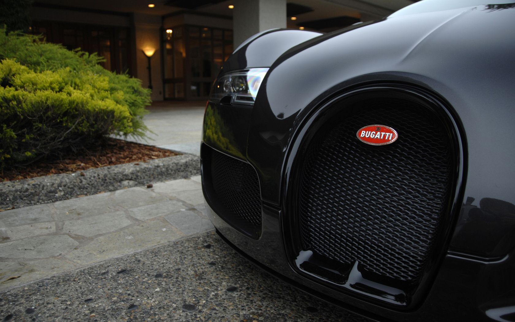 Parachoques delantero de un bugatti estacionado cerca de un arbusto verdeParachoques delantero de un Bugatti estacionado cerca de un arbusto verde