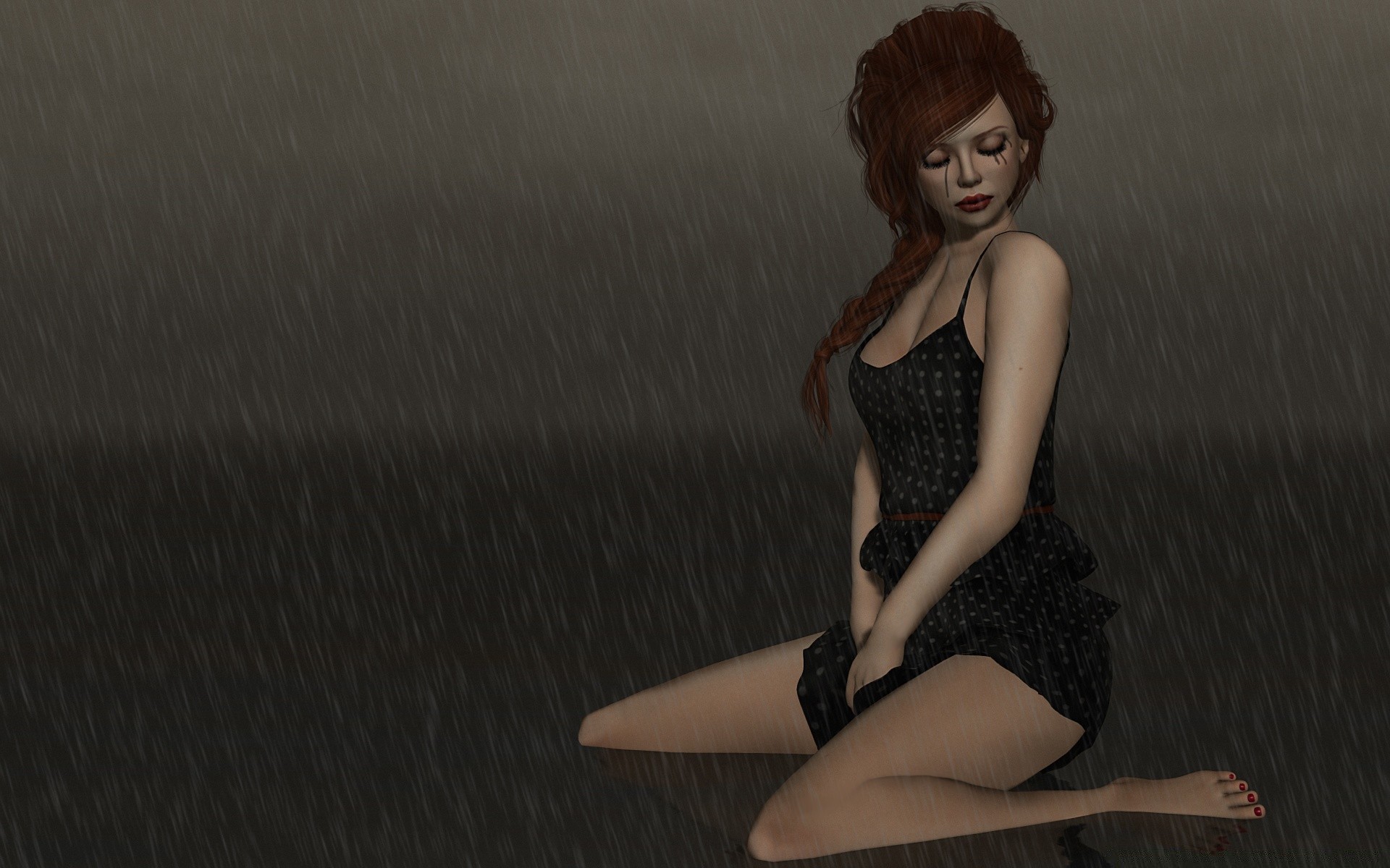 Chica de negro llorando bajo la lluviaёm