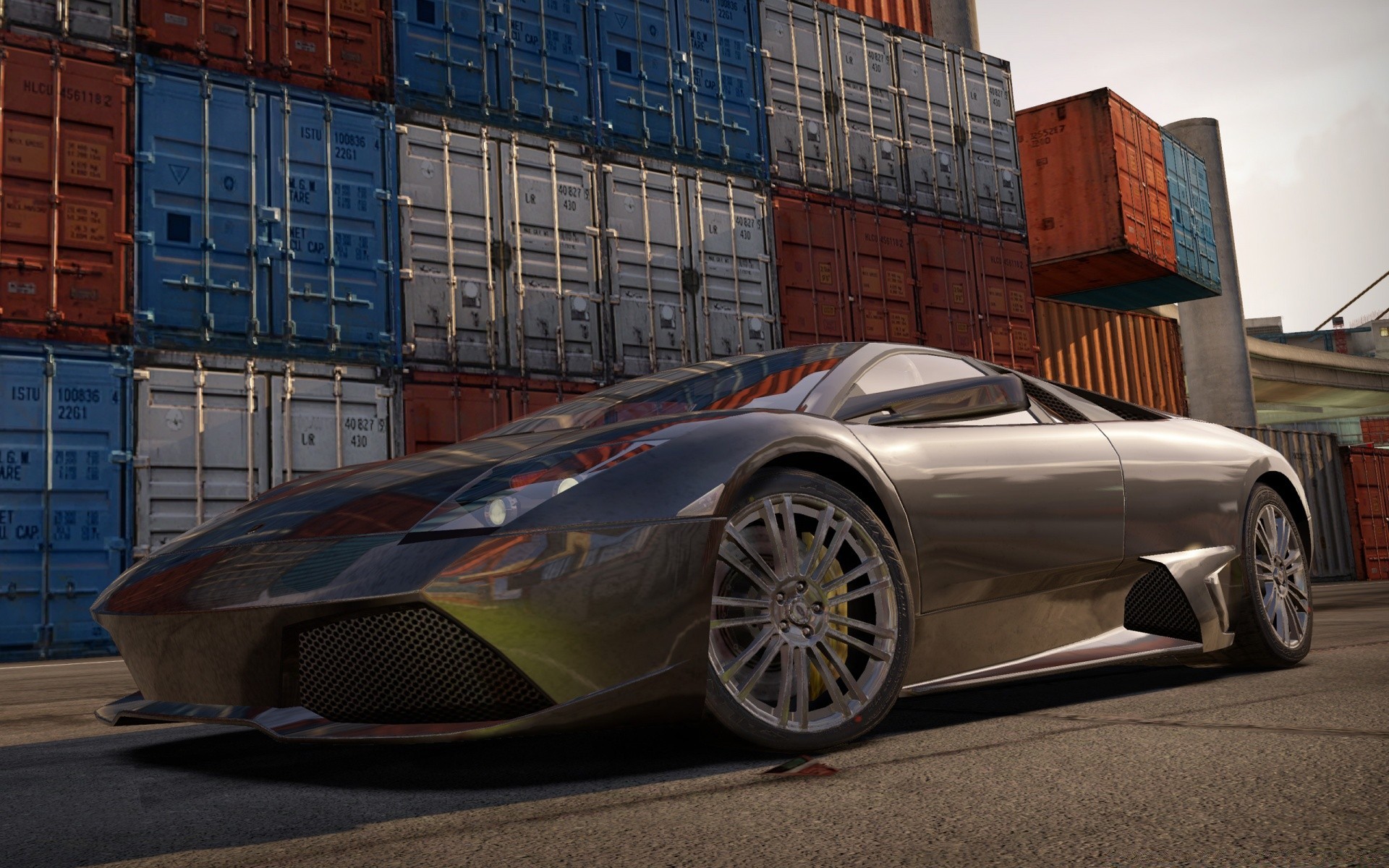 Foto del juego la sed de velocidad de un coche de pie cerca de los contenedores