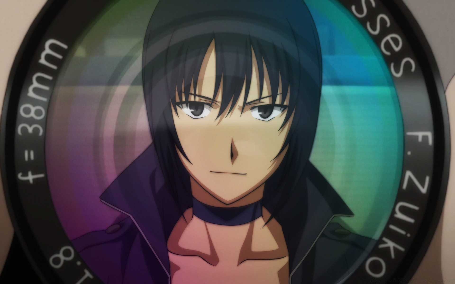 Anime joven. Primer plano de la cara. Flequillo negro y ojos negros
