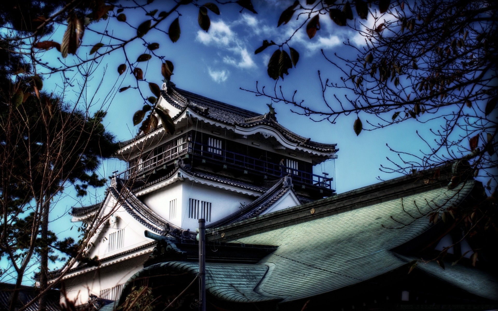 Casa asiática contra el cielo azul