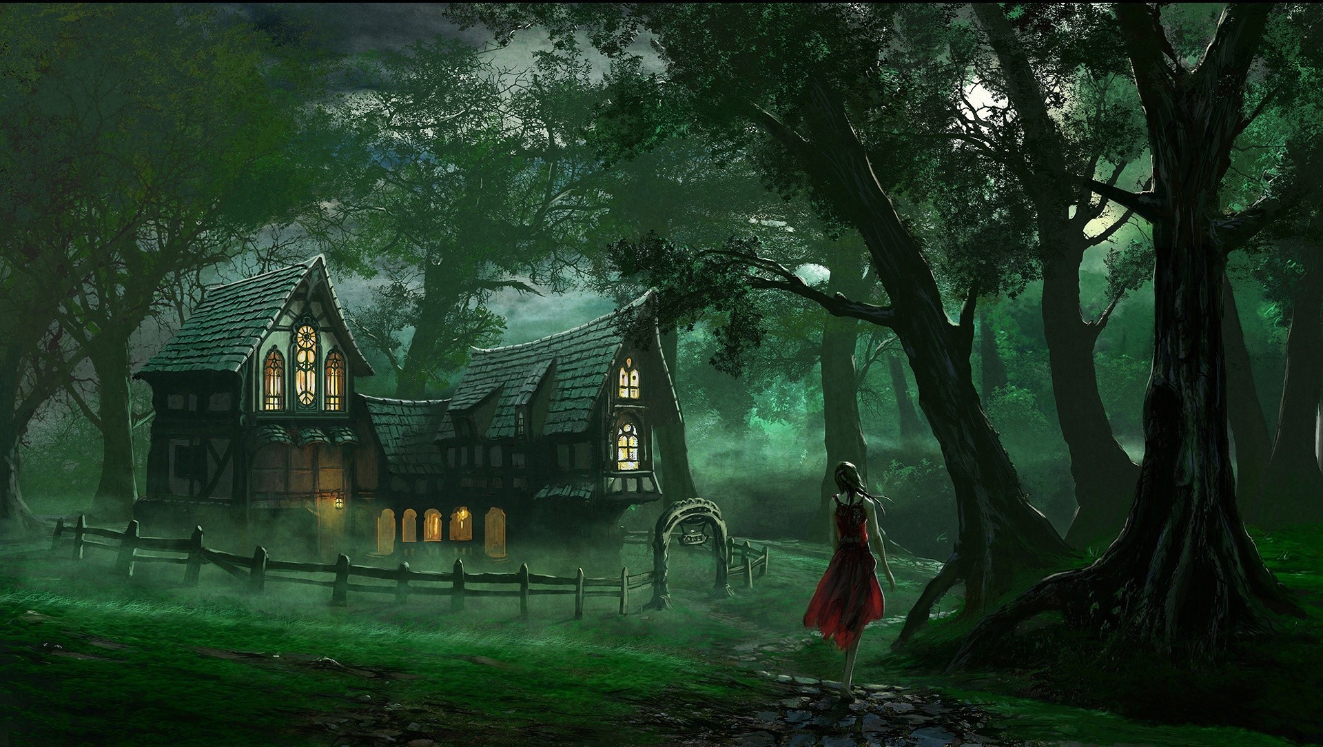 Casa oscura en un bosque misterioso