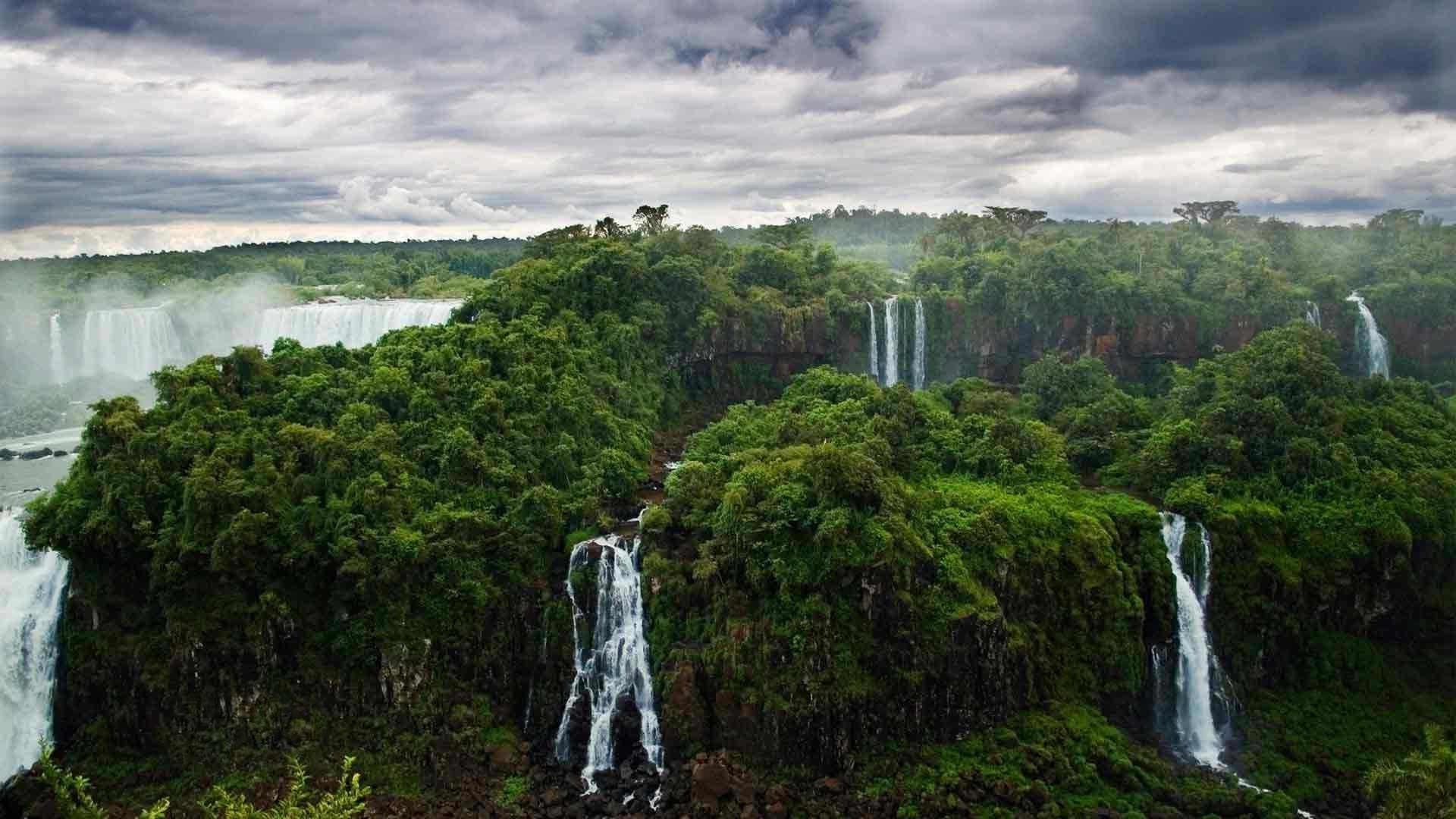 Viajes frente a un hermoso paisaje de cascadas de montaña