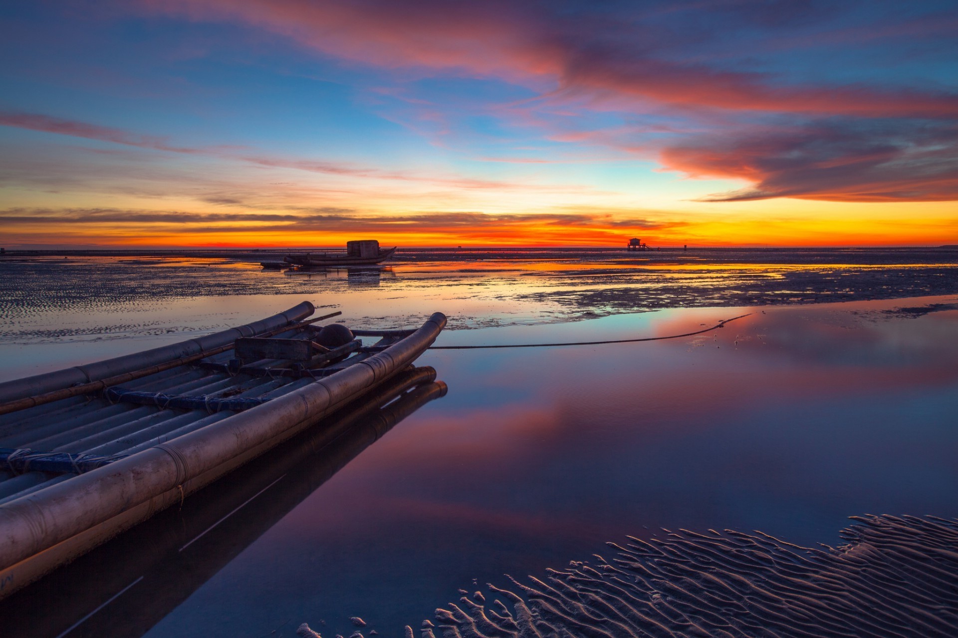 Muelle cerca de la llanura del lago al atardecer