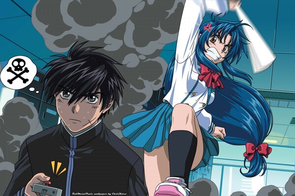 Cuatro personajes de anime en el fondo de la máquinaCuatro personajes de anime en el fondo de la máquina