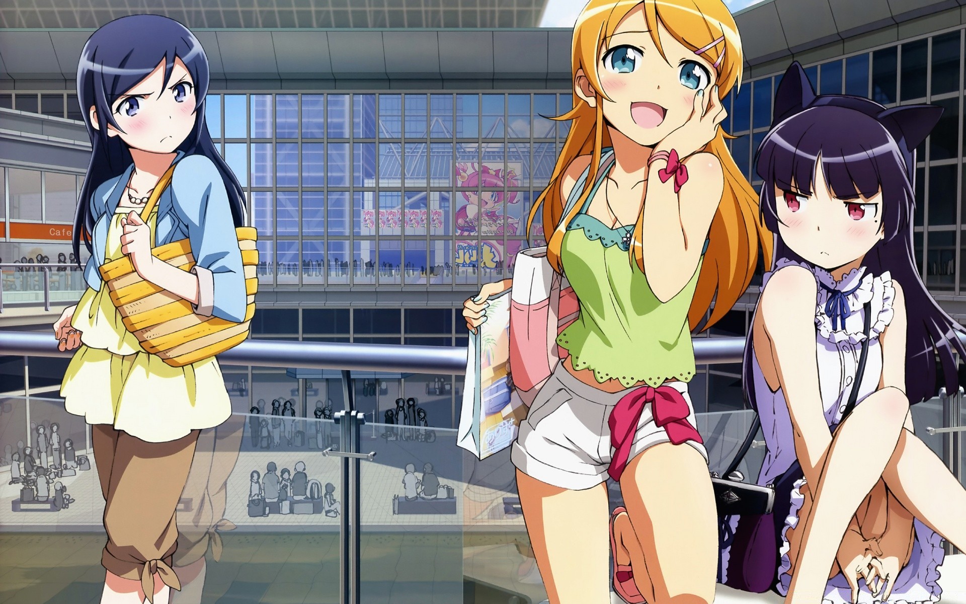 Tres colegialas de anime en las escaleras