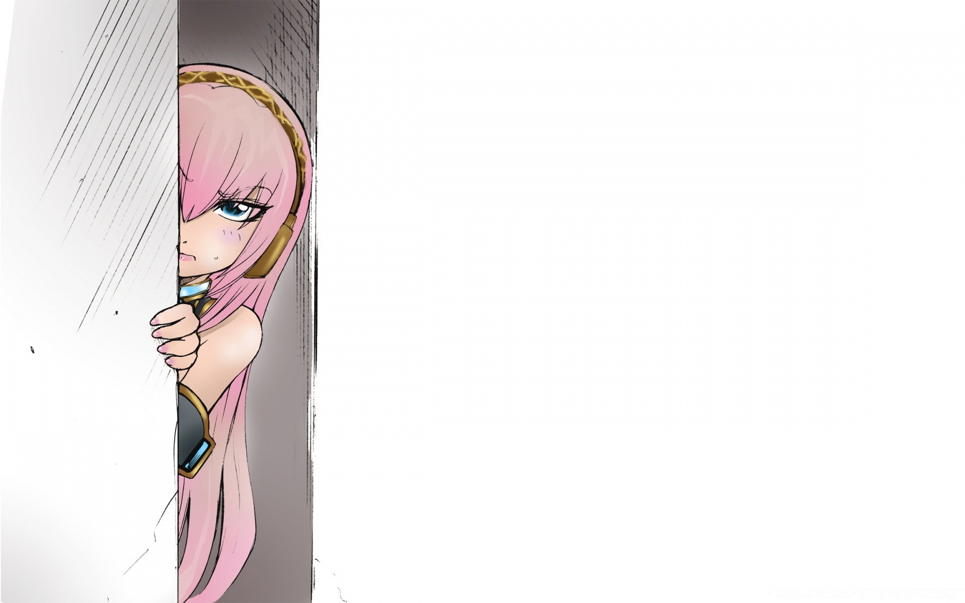 Anime ilustración chica se asoma por detrás de la esquina en rosa