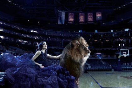 Imagen de una chica con el pelo negro en una pared interiorImagen de una chica con el pelo negro en una pared interior