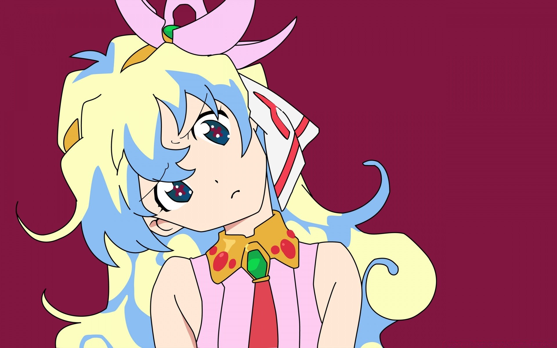 Chica de anime con cabello rubio y verde y ojos verdes sonriendo