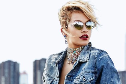 Chica de moda con pelo corto y gafas