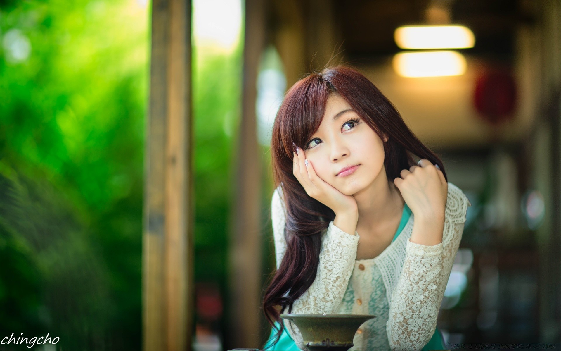 Mirada lánguida de la chica en la distancia
