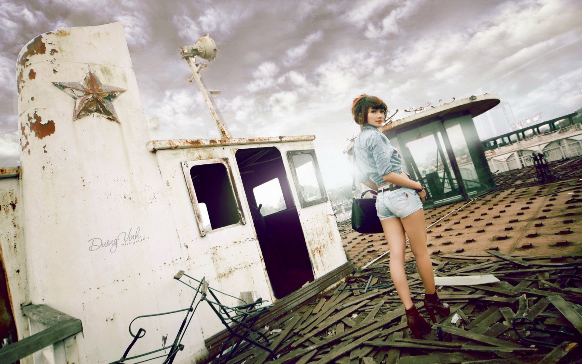 Chica de ojos azules con una venda de vaquero alrededor del cuello