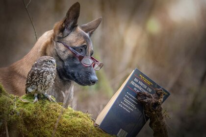 Retrato de un lindo perro con gafas
