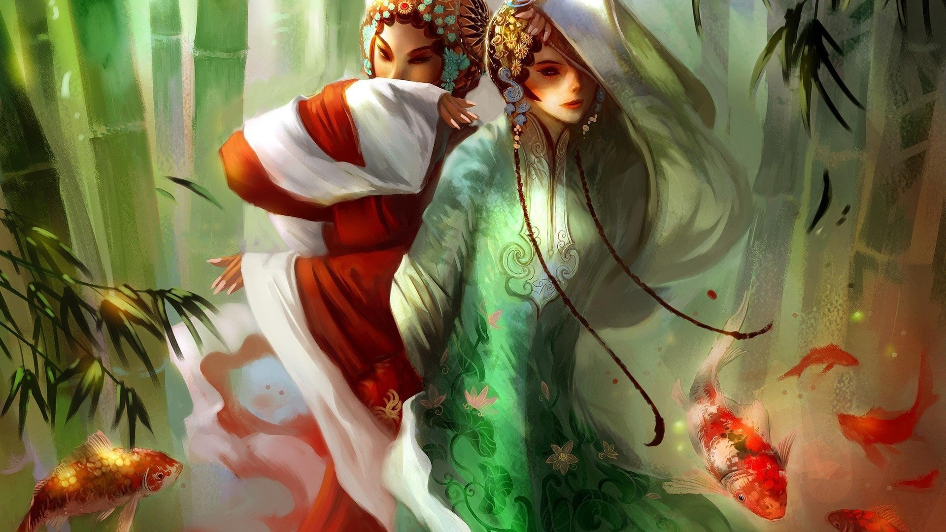 El arte chino de la fantasía de la muchacha y el amor