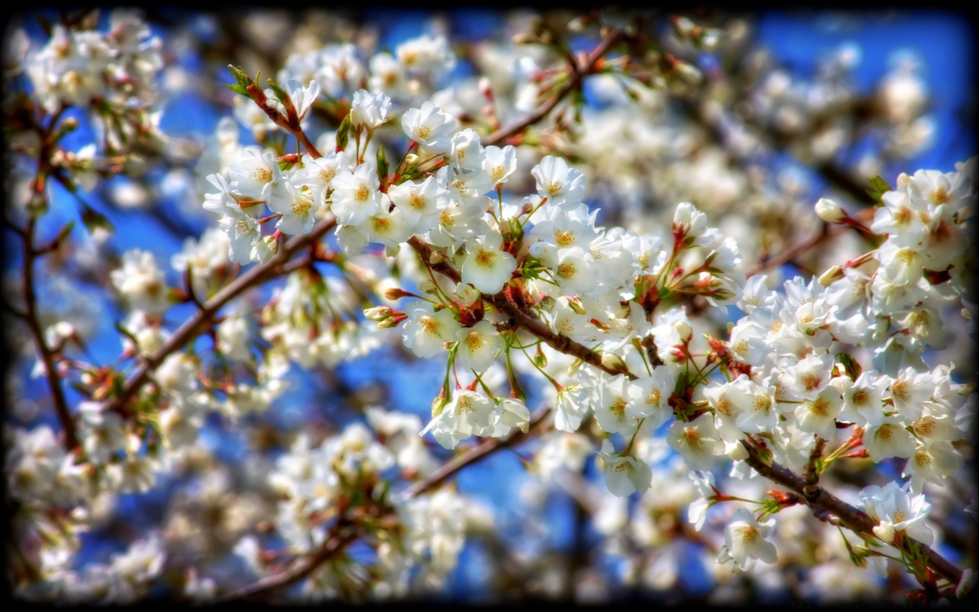 Flores de cerezo blanco y cielo azul