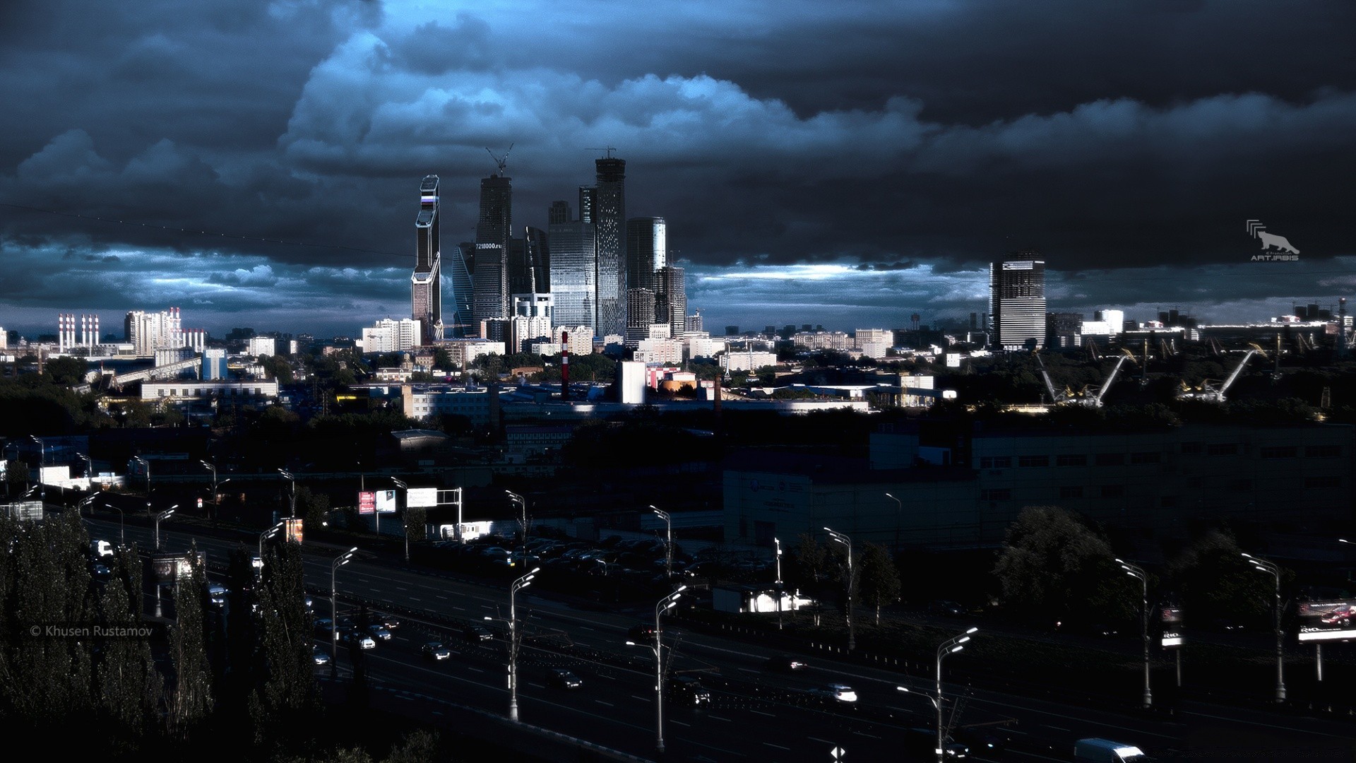 Ciudad De Skyline. Los rascacielos descansan en el cielo