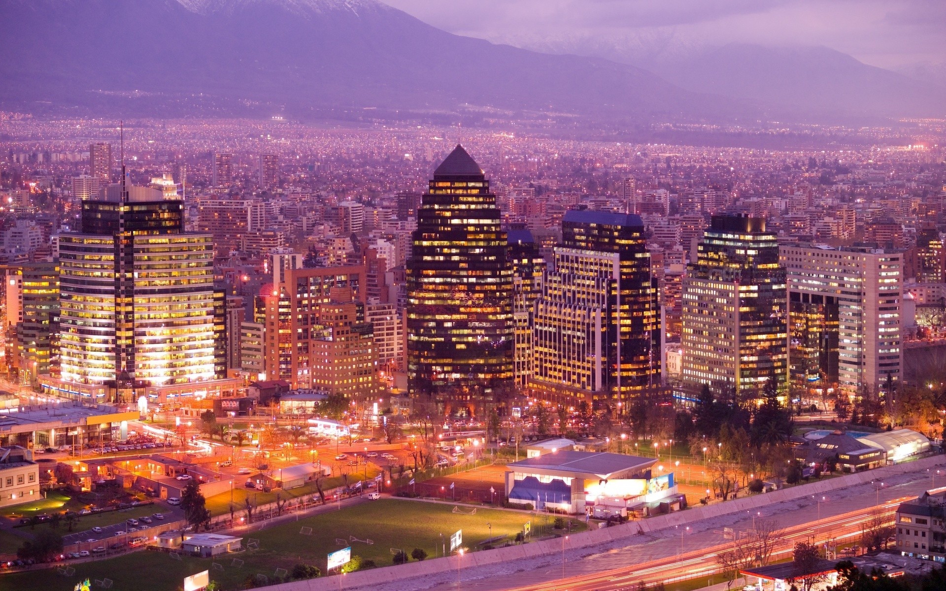 Hermosa ciudad en América por la noche