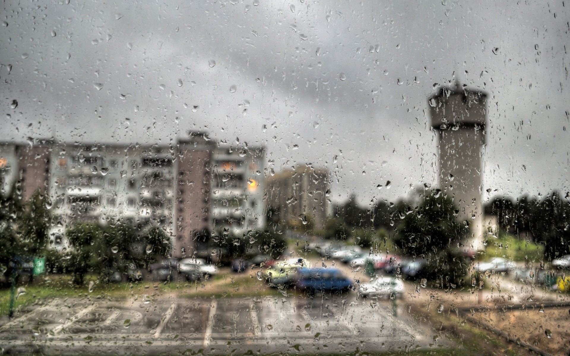 Vista de la ciudad lluviosa