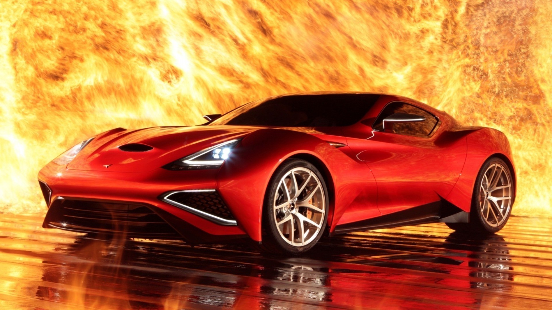 Coche deportivo en una trampa de fuego