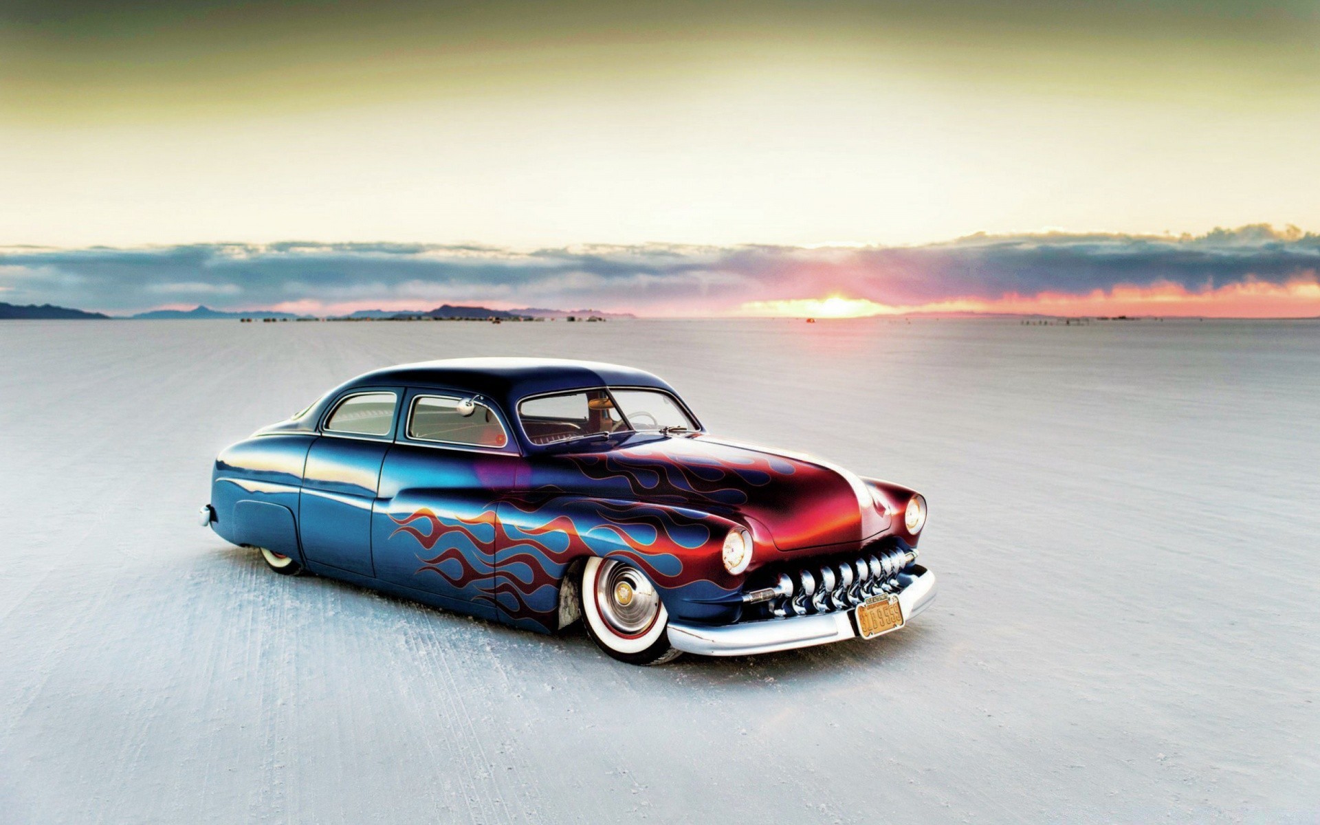Encuentro del amanecer en un coche retro