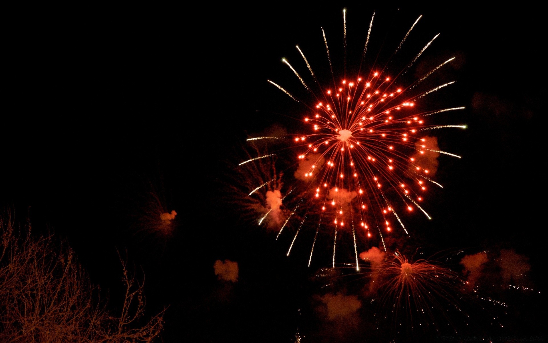 Fuegos artificiales en el cielo nocturno