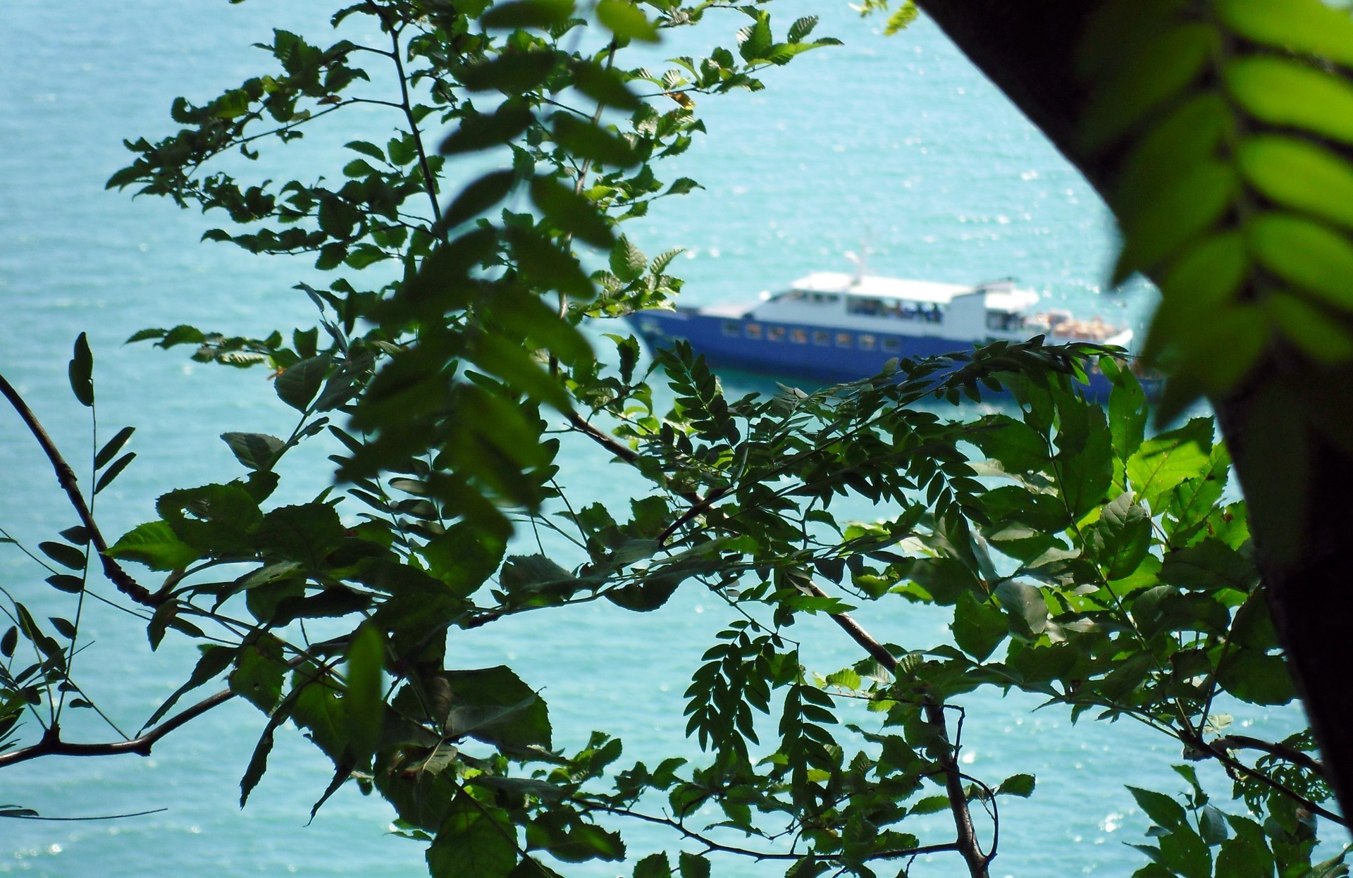 Navegue a través de las ramas verdes del árbol
