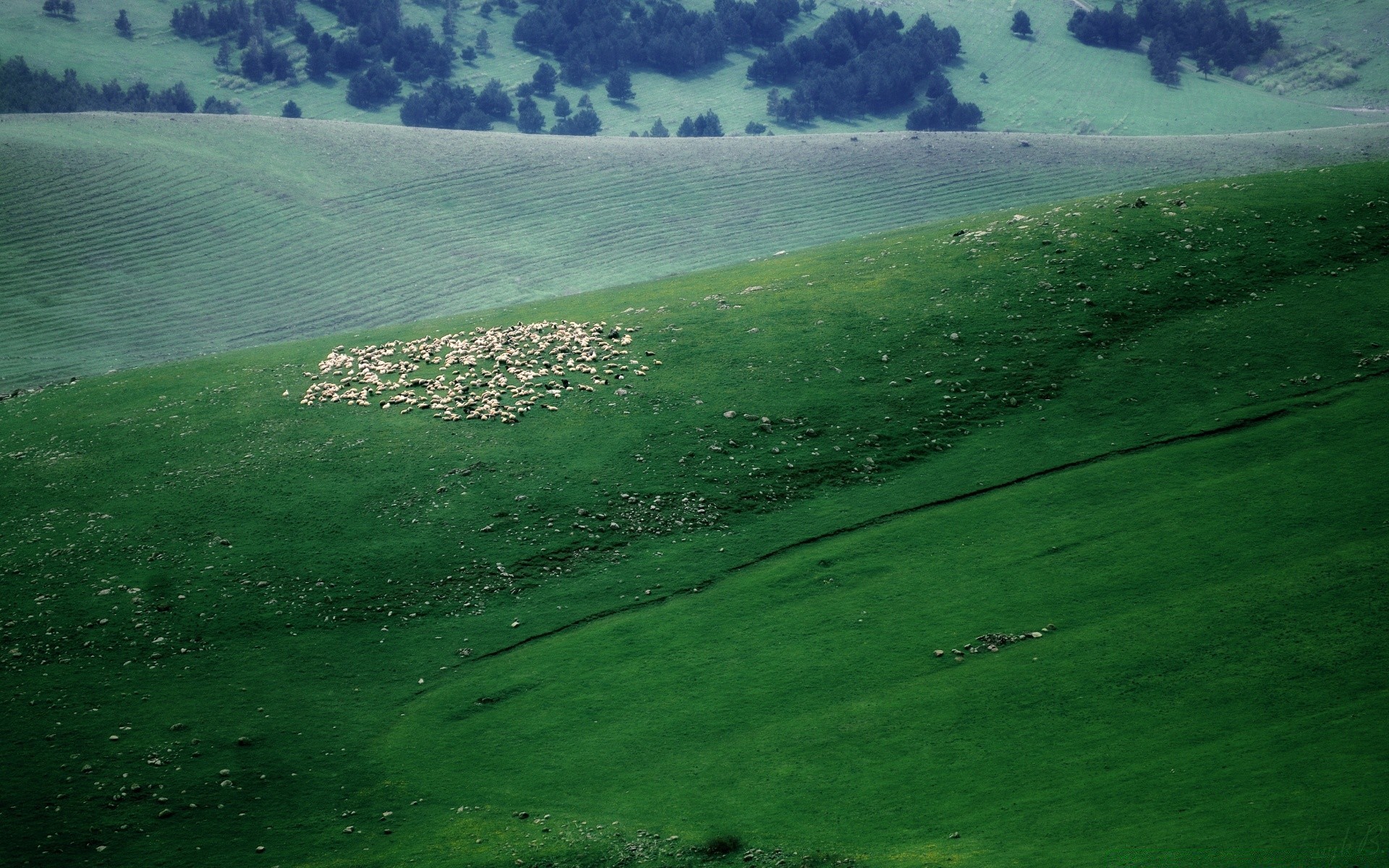Cuerpo de agua entre las rocas verdes envueltos en neblina