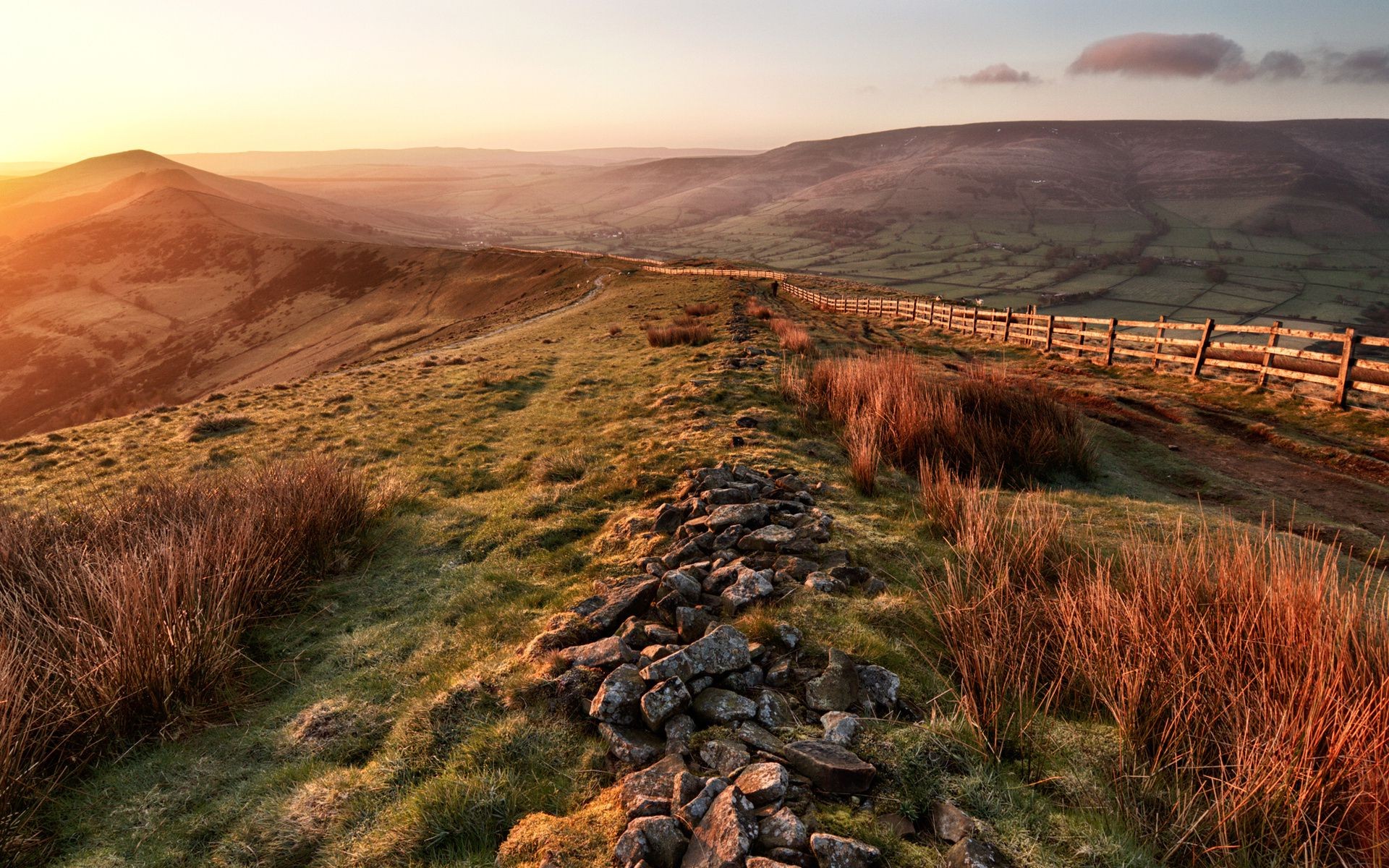 Naturaleza campo de lirios amarillos contra colinas verdes