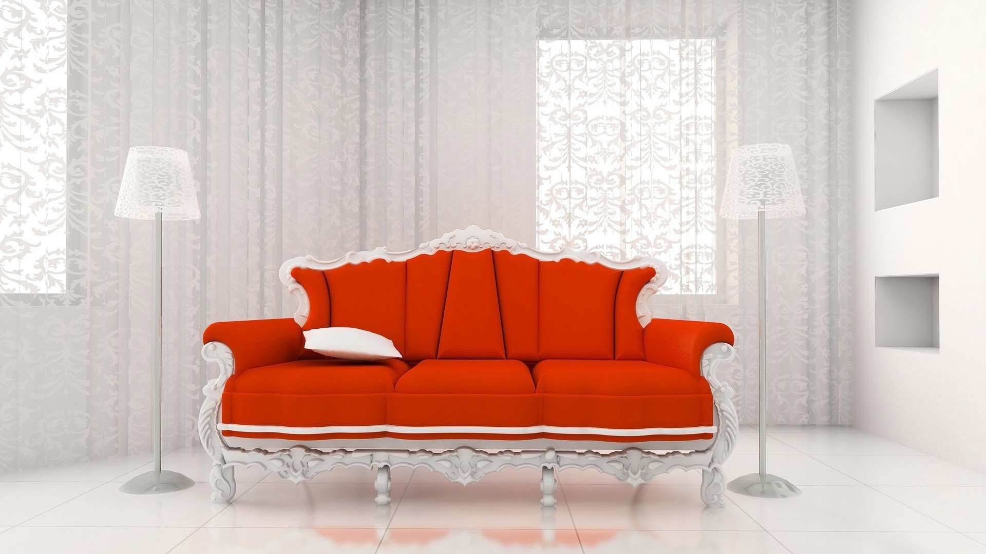 Rojo blanco combinación de colores en la habitación