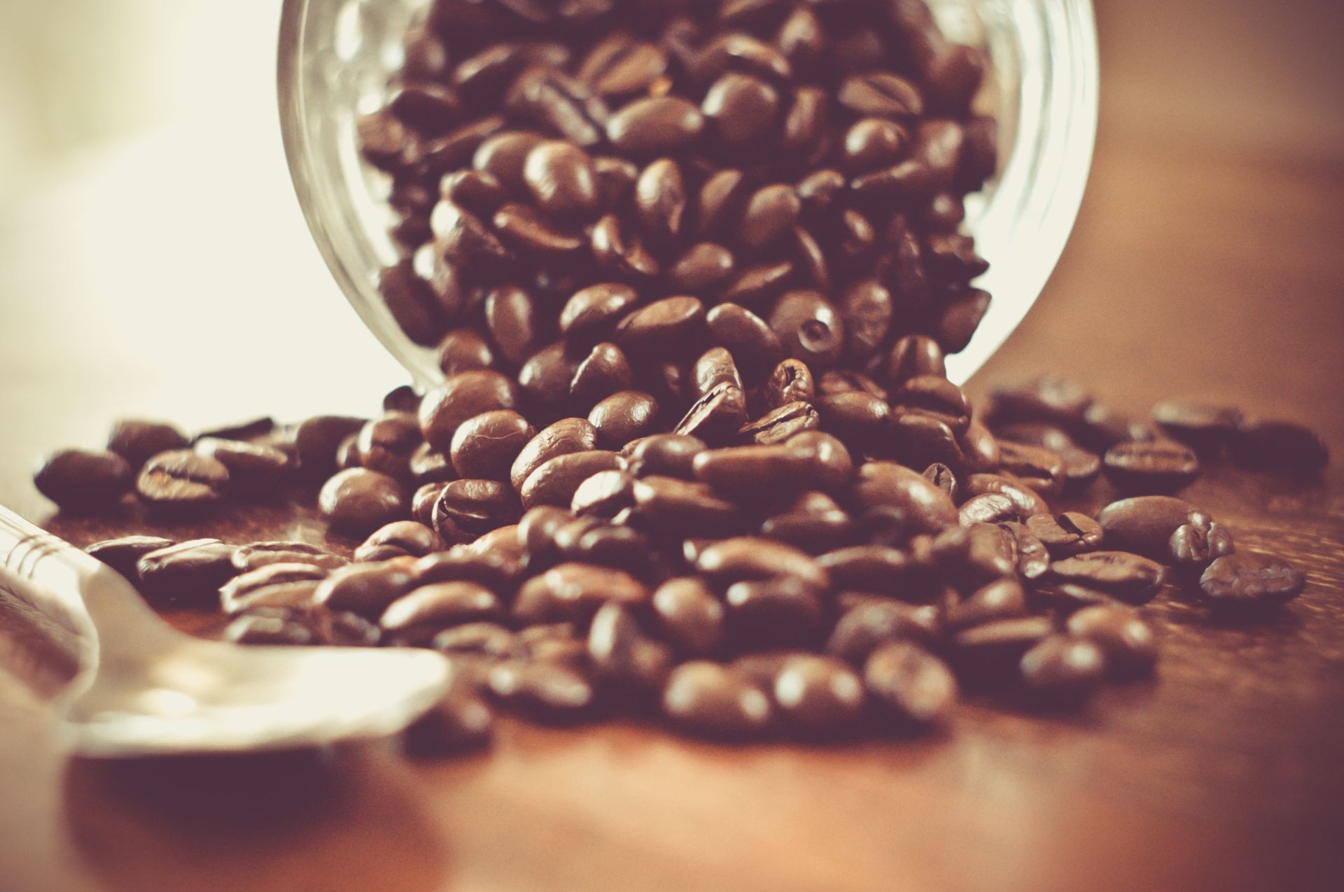 Granos de café esparcidos sobre la mesa