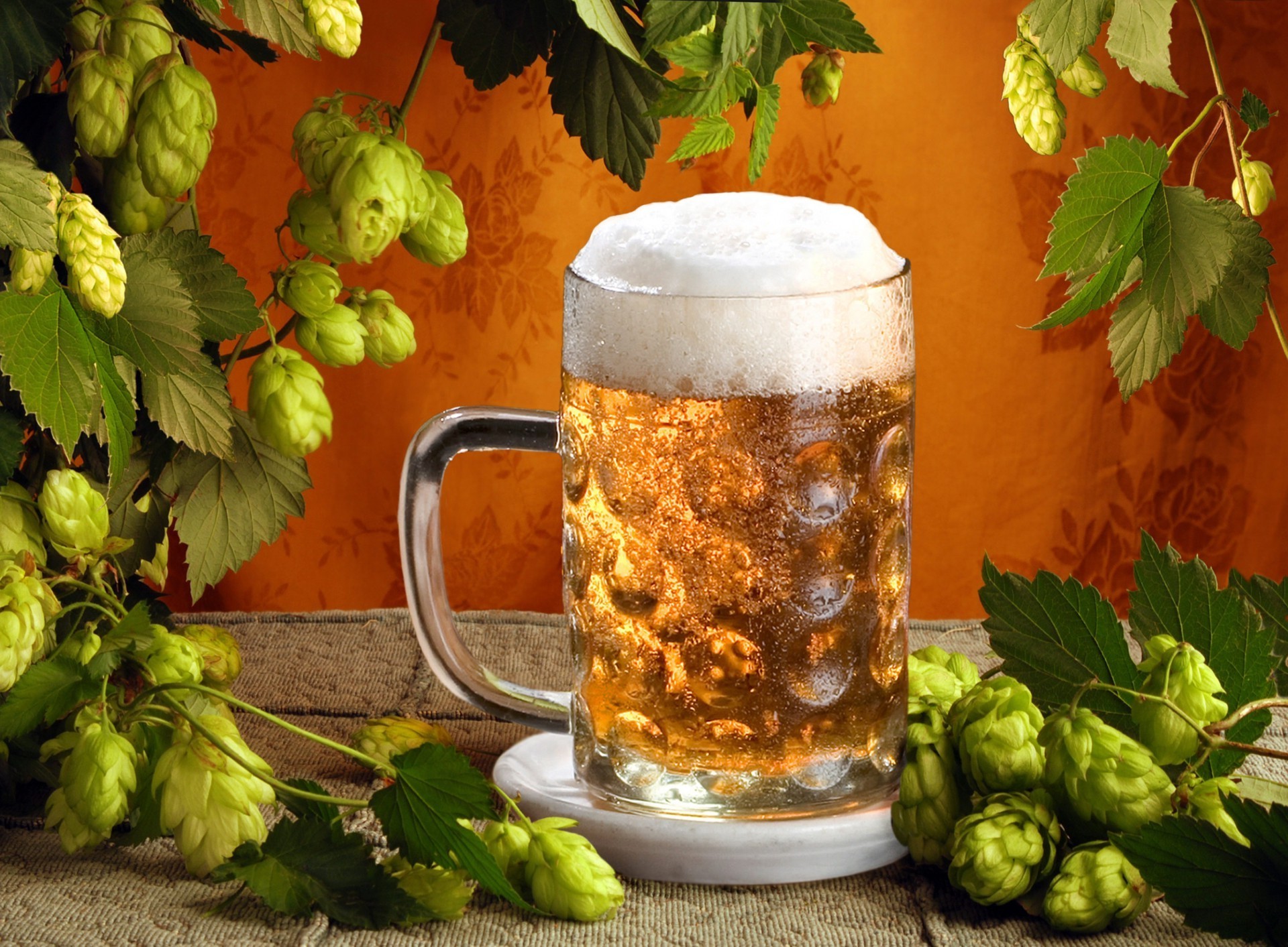 Taza de cerveza con fondo de lúpulo