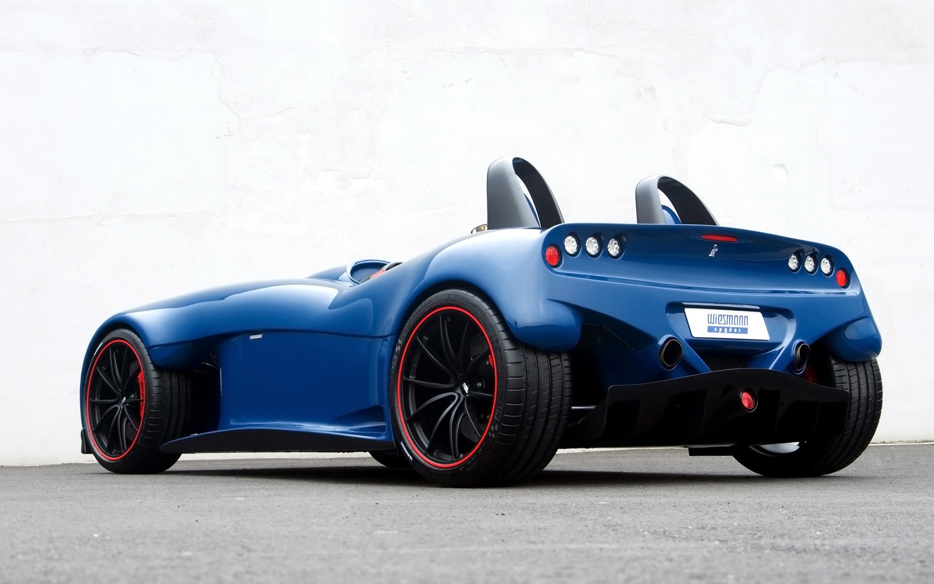 Deportivo de carreras azul sobre fondo gris