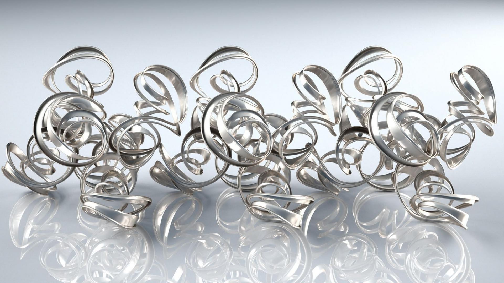Un montón de joyas de plata sobre un fondo blanco