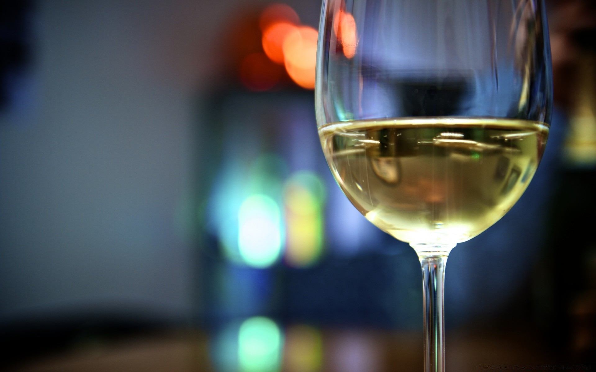 Copa de vino blanco sobre fondo borroso