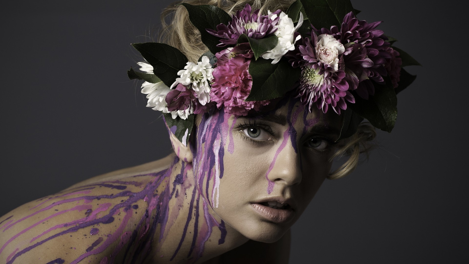 Hermosa chica con una corona en la cabeza en la naturaleza